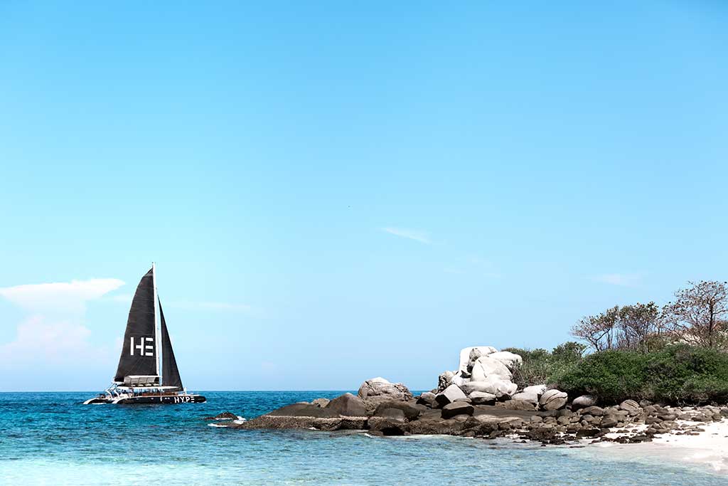 เรือออกจากท่าเรืออ่าวฉลอง > เกาะเฮ > เกาะราชา > แหลมพรหมเทพ Hype Luxury Boat Club เปิดประสบการณ์ใหม่ในการท่องเที่ยวให้กับคุณกับการล่องเรือใบหรูปาร์ตี้ DJ EDM ลำเเรกและลำเดียวของประเทศไทย รับประกันความฟิน เพราะถ้ามาทริปนี้จะได้ทั้งความชิล อิ่มอร่อยกับอาหารว่างคานาเป้เบาๆและเครื่องดื่มหลากหลายชนิด โดยเฉพาะช่วงเวลาก่อนพระอาทิตย์ตกถือเป็นช่วงเวลาสุดพิเศษมากๆ การล่องเรือใบทริปนี้ยังมีหยุดพักให้เล่นน้ำเป็นเวลา 1 ชั่วโมงอีกด้วย สำหรับคนที่ชอบโยกย้ายส่ายเอวก็เต้นได้ทั้งทริปเพราะดีเจของเราจะเปิดเพลงสนุกให้ฟังตลอดการเดินทาง โดยเฉพาะช่วงค่ำเพลงจะยิ่งมันส์เป็นเท่าตัวเลยทีเดียว