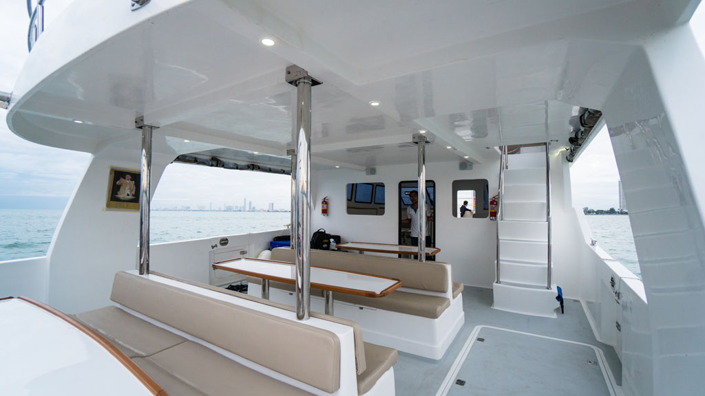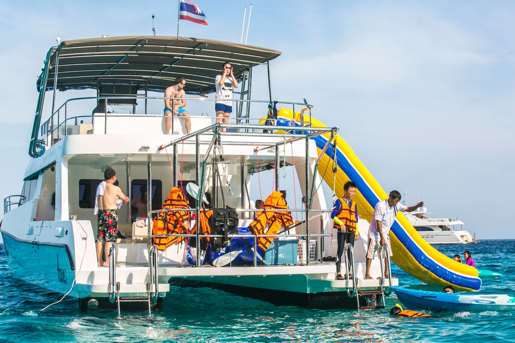 เปิดให้บริการทุกวันอังคาร, พฤหัสบดี, เสาร์ (เวลา 11:00-18:30 น.): เรือจุได้ 45 คน : ขึ้นเรือที่ท่าเรืออ่าวฉลอง (จุดนัดพบ Discover Catamaran Chalong Lounge ท่าเรืออ่าวฉลอง)